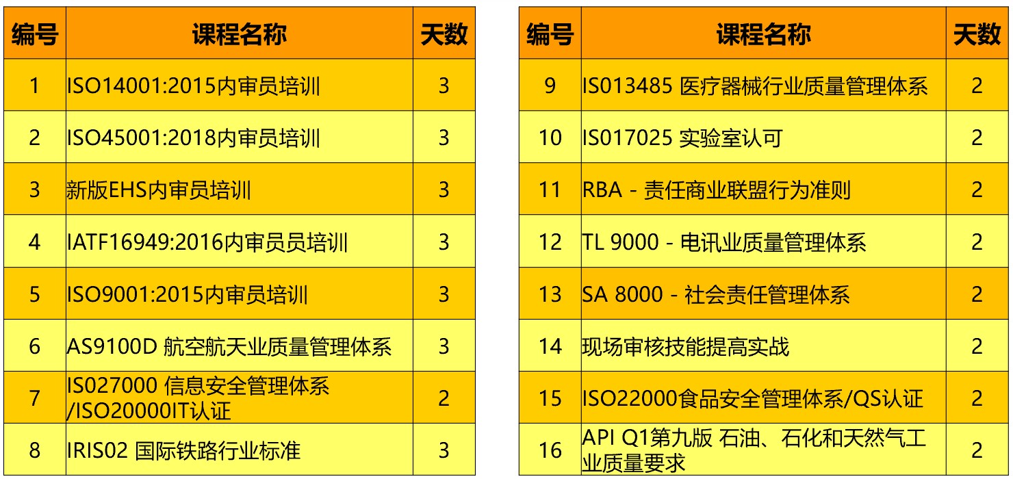 培訓加咨詢 - 體系審核類 SA