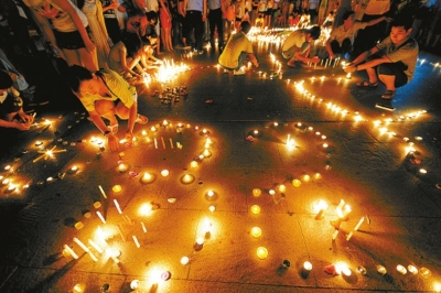 8月2日晚,群眾自發(fā)聚集在昆山市民廣場上,點燃蠟燭,悼念逝者,為傷者祈福